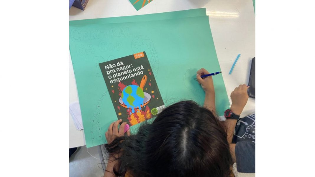O tema foi levado à sala de aula depois que a professora Cristiane Lacerda inscreveu a escola Eurípides para participar do “Estação Central COP”, projeto educacional do Observatório do Clima, que busca levar a COP 30 às salas de aulas. Ao participar do projeto, os professores recebem uma caixa com material e junto com os alunos precisam desenvolver ações que conscientizem a comunidade escolar sobre a crise climática.