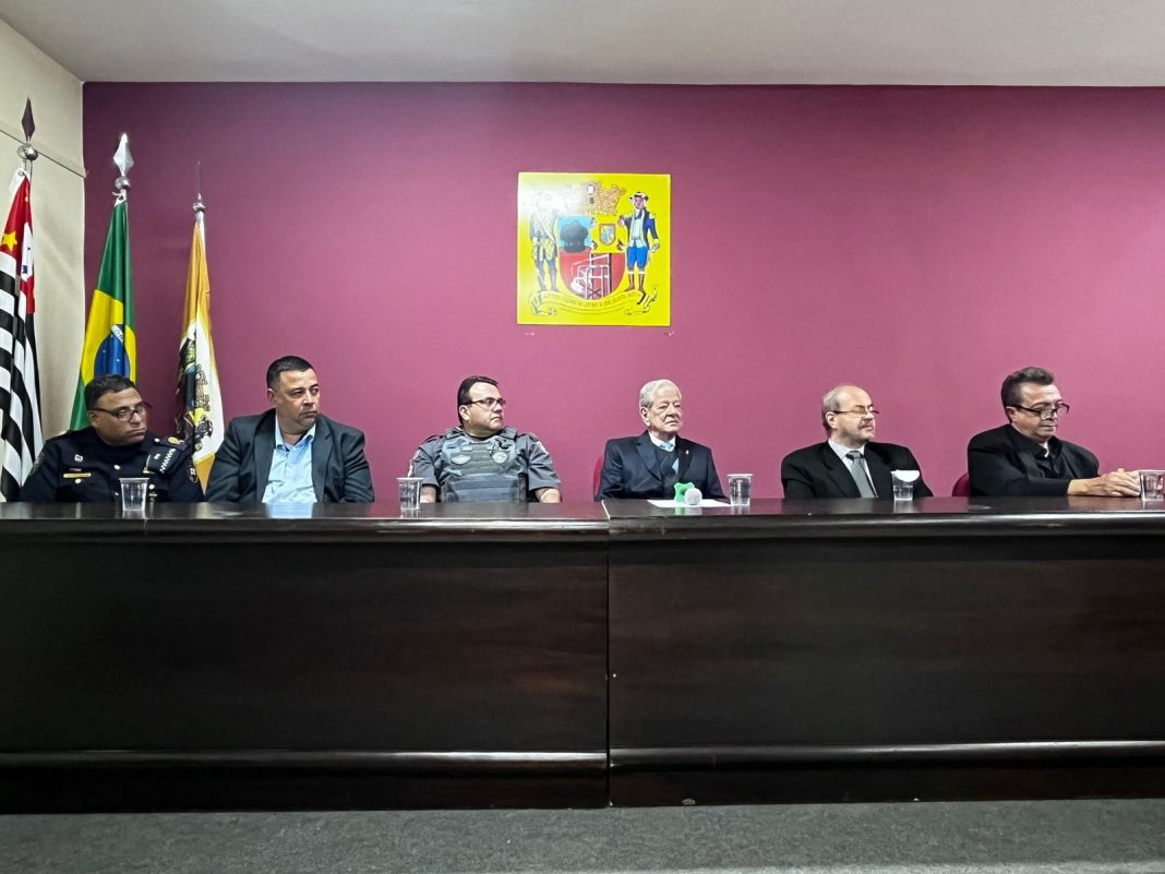 A mesa solene composta ao centro pelo presidente da instituição, Dr. José Carlos Bruno, contou com as seguintes autoridades: Inspetor Ricardo da Silva (Inspetor Chefe da GCM de Santo Amaro), Luiz Fernando de Noronha (chefe de gabinete do Vereador Silvão Leite e representante do parlamentar santamarense), o Ten-Cel PM Daniel Prado PALMA Chefe do Estado Maior do CPAM-10 (representando o Cel PM Alexandre Andrade dos Santos – Comandante do CPAM 10), o Dr. Édson Luiz de Queiroz (Desembargador do Tribunal de Justiça de SP) e Quirino Clemente Jacob Filho (representando o secretário adjunto de cultura e economia criativa de SP e diretor da Biblioteca Mário de Andrade Rodrigo Massi).