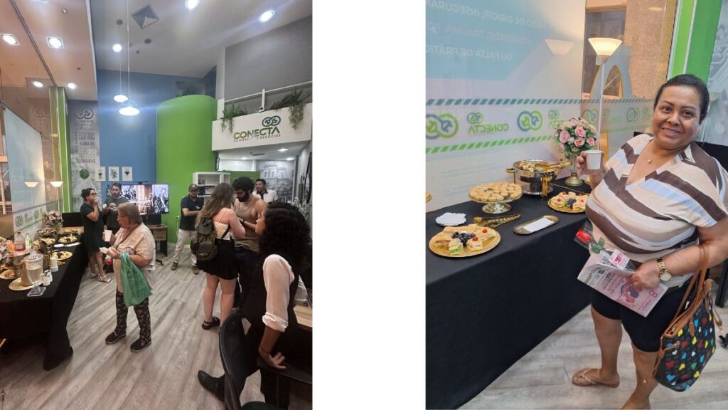 Ao passarem pela porta da redação dos jornais, que estava decorada com balões rosas, as participantes foram recepcionadas com flores e brindes e convidadas a entrar no espaço preparado para o encontro, onde puderam desfrutar de quitutes e momentos de conversa e integração.