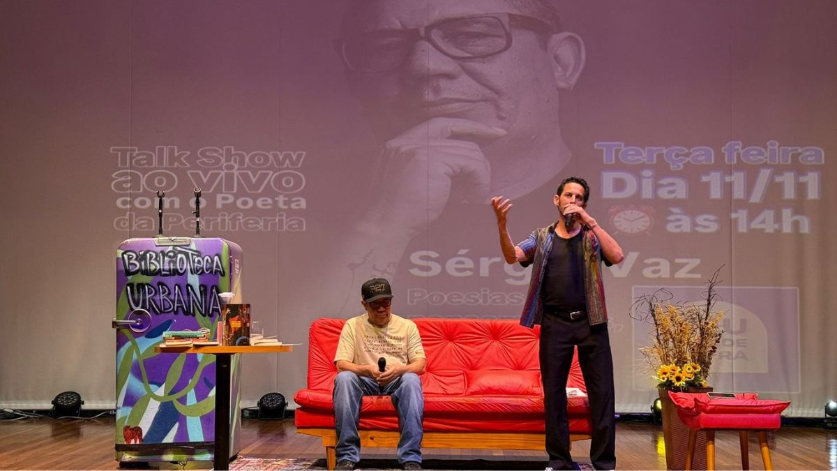 A estreia, realizada no dia 11 de novembro, contou com a presença marcante do escritor e ativista cultural Sérgio Vaz, conhecido como o “Poeta da Periferia”. Autor de dez livros, criador da Cooperifa e vencedor de diversos prêmios nacionais, Vaz protagonizou um bate-papo descontraído e potente, que reuniu cerca de 350 pessoas. Durante sua participação, falou sobre literatura, poesia, formação de leitores, cultura periférica e o poder transformador das palavras — inspirando jovens e adultos do extremo sul a ocupar espaços culturais, produzir conhecimento e valorizar suas próprias narrativas.